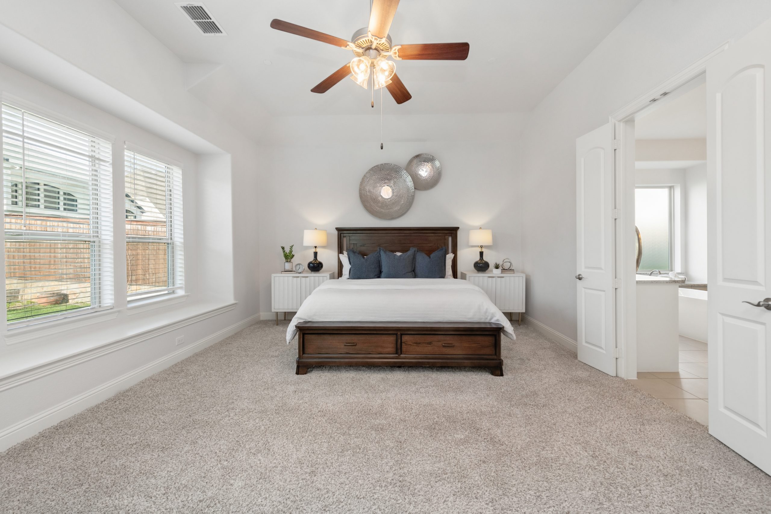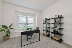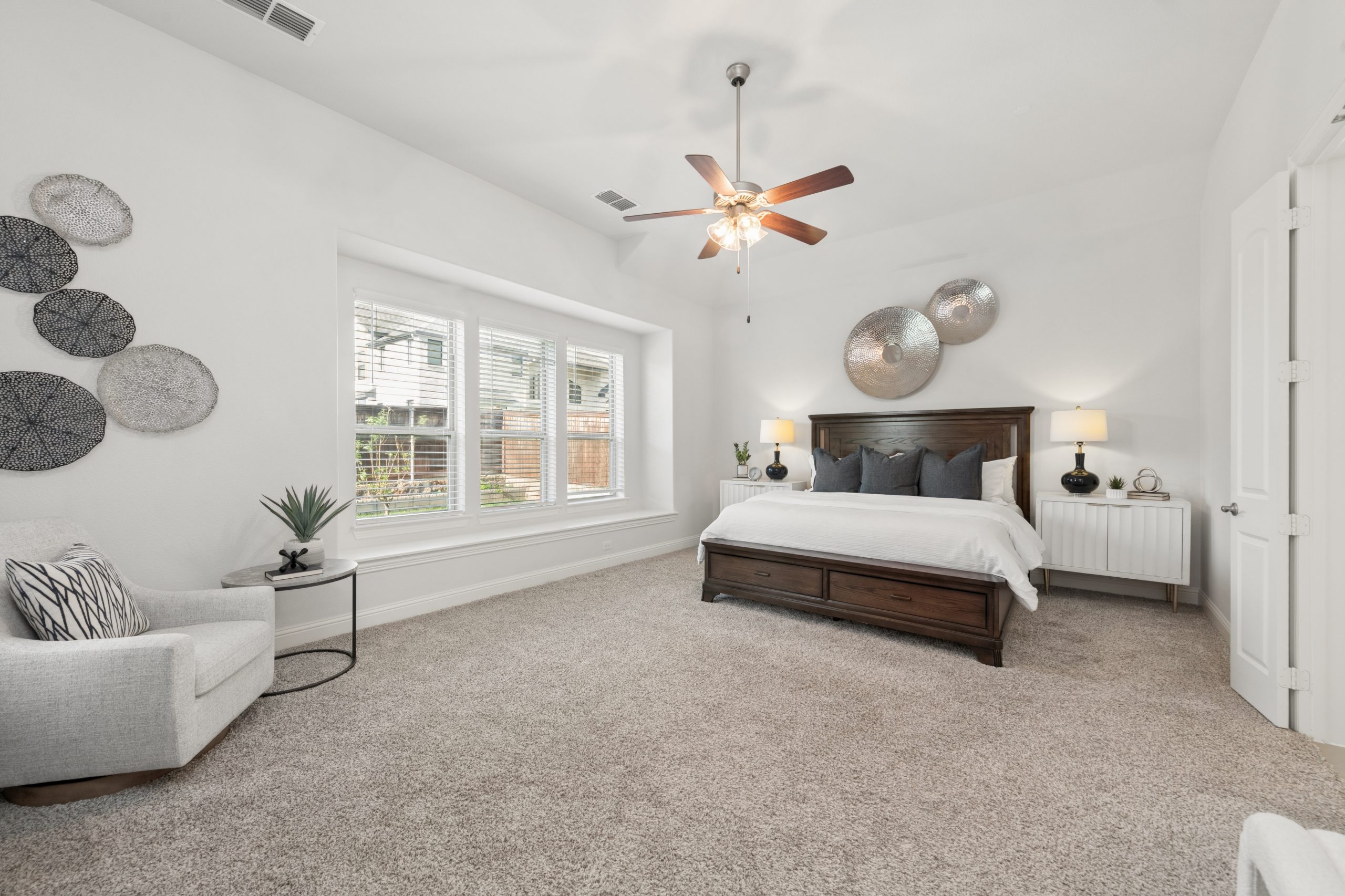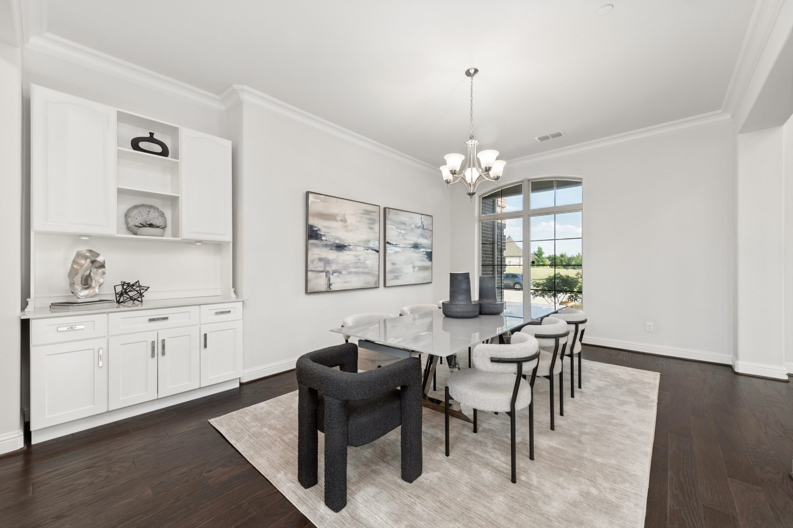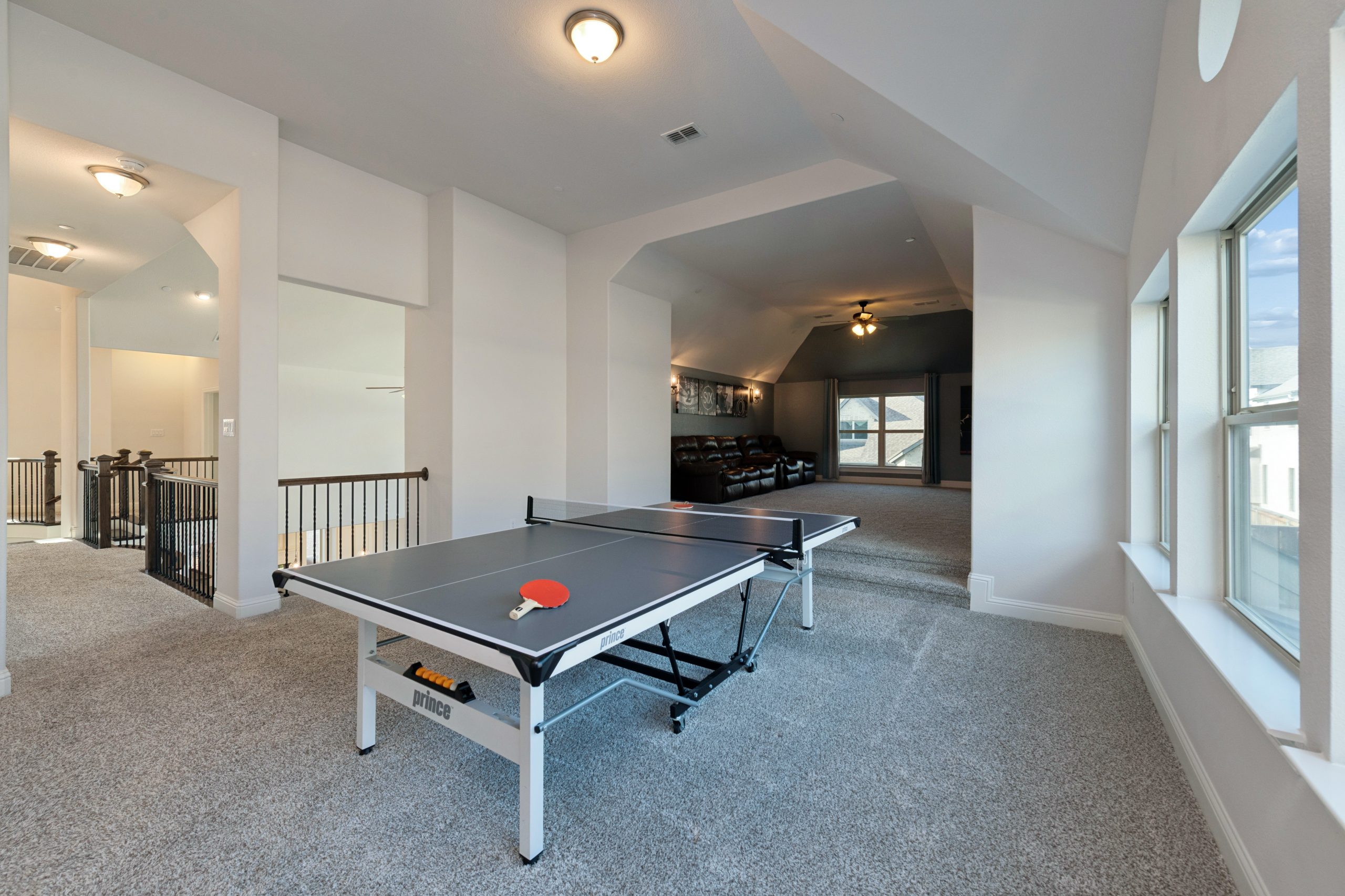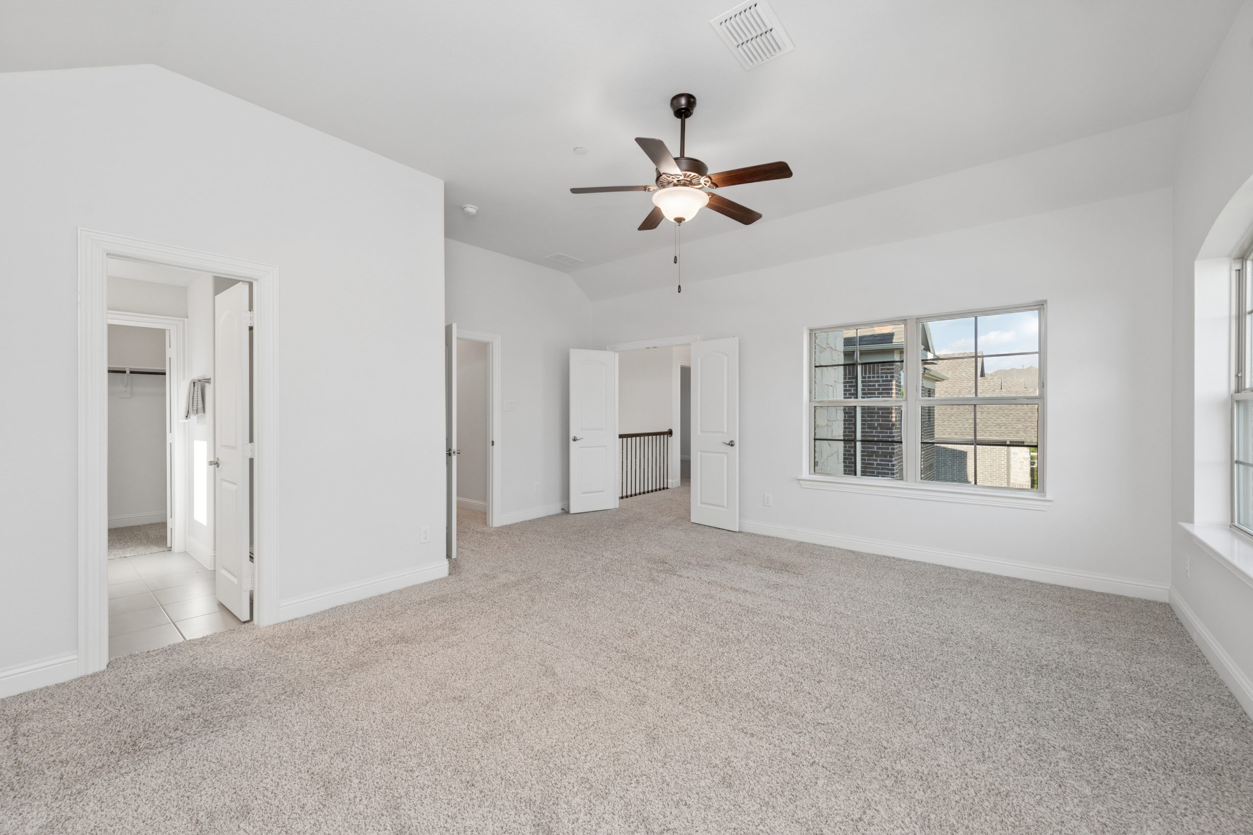 - Grand two-story entry and curved staircase greet with light-filled spaces.